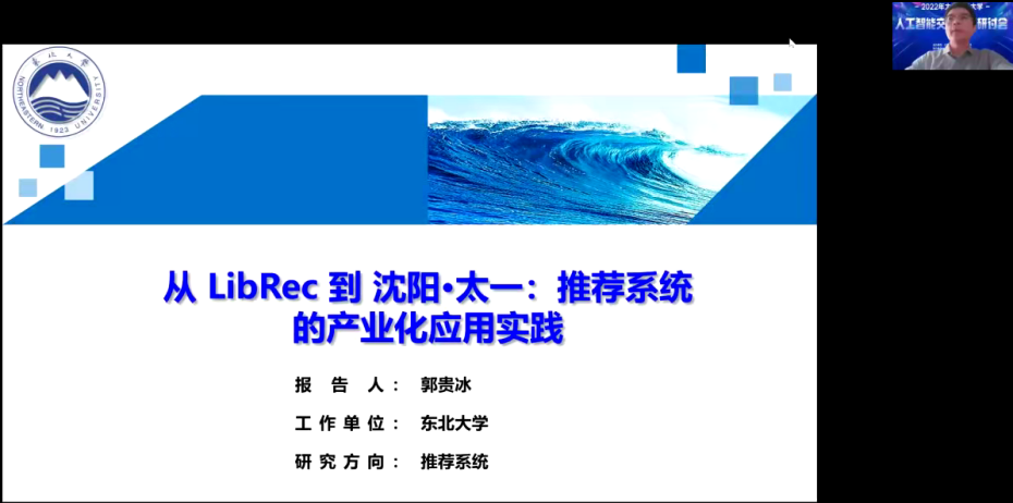 此外,11月25日下午,郭贵冰教授作题为“从LibRec到沈阳·太一:推荐系统的产业化应用实践”的报告,为整个研讨会拉开序幕。他介绍了LibRec及其影响,针对LibRec存在的问题提出的沈阳·太一多模态大模型解决思路,最后介绍为实现大模型如何对数据进行增强。