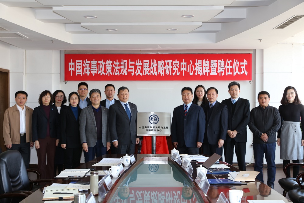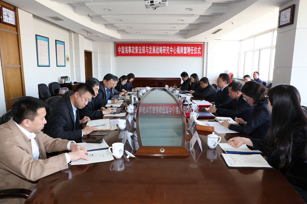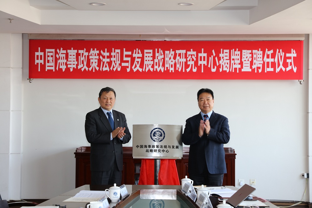 4月10日上午,beat365官方网站在综合楼822会议室举行中国海事政策法规与发展战略研究中心揭牌暨聘任仪式。交通运输部原安全总监刘功臣、beat365官网校长孙玉清出席仪式。仪式由副校长刘正江主持。