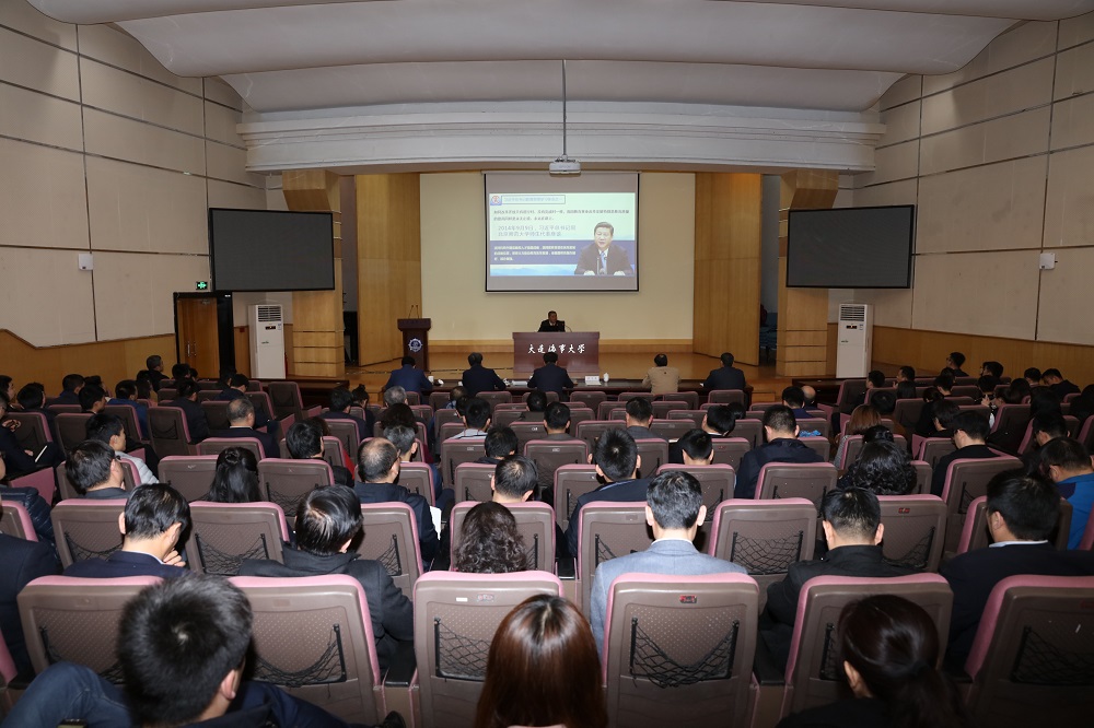 全校中层干部、科级干部、机关党员、专兼职指导员以及马克思主义学院师生代表参加了会议。