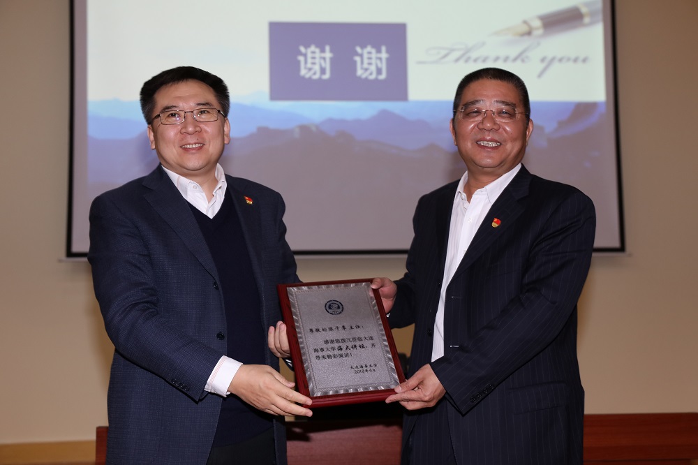 郑少南向陈子季赠送了“海大讲坛”纪念牌。