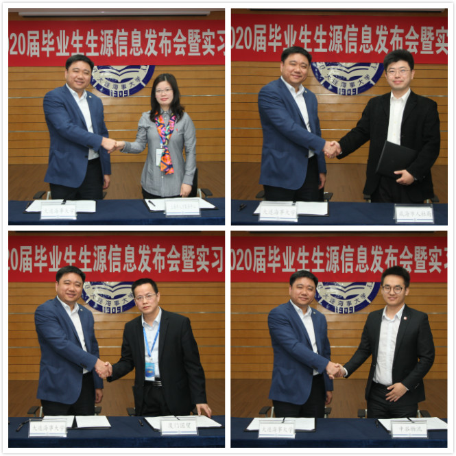 刘益迎代表学生就业指导中心与上海市人才服务中心、威海市人力资源和社会保障局、厦门国贸控股集团有限公司、上海中谷物流股份有限公司分别签订了校地、校企就业合作协议。