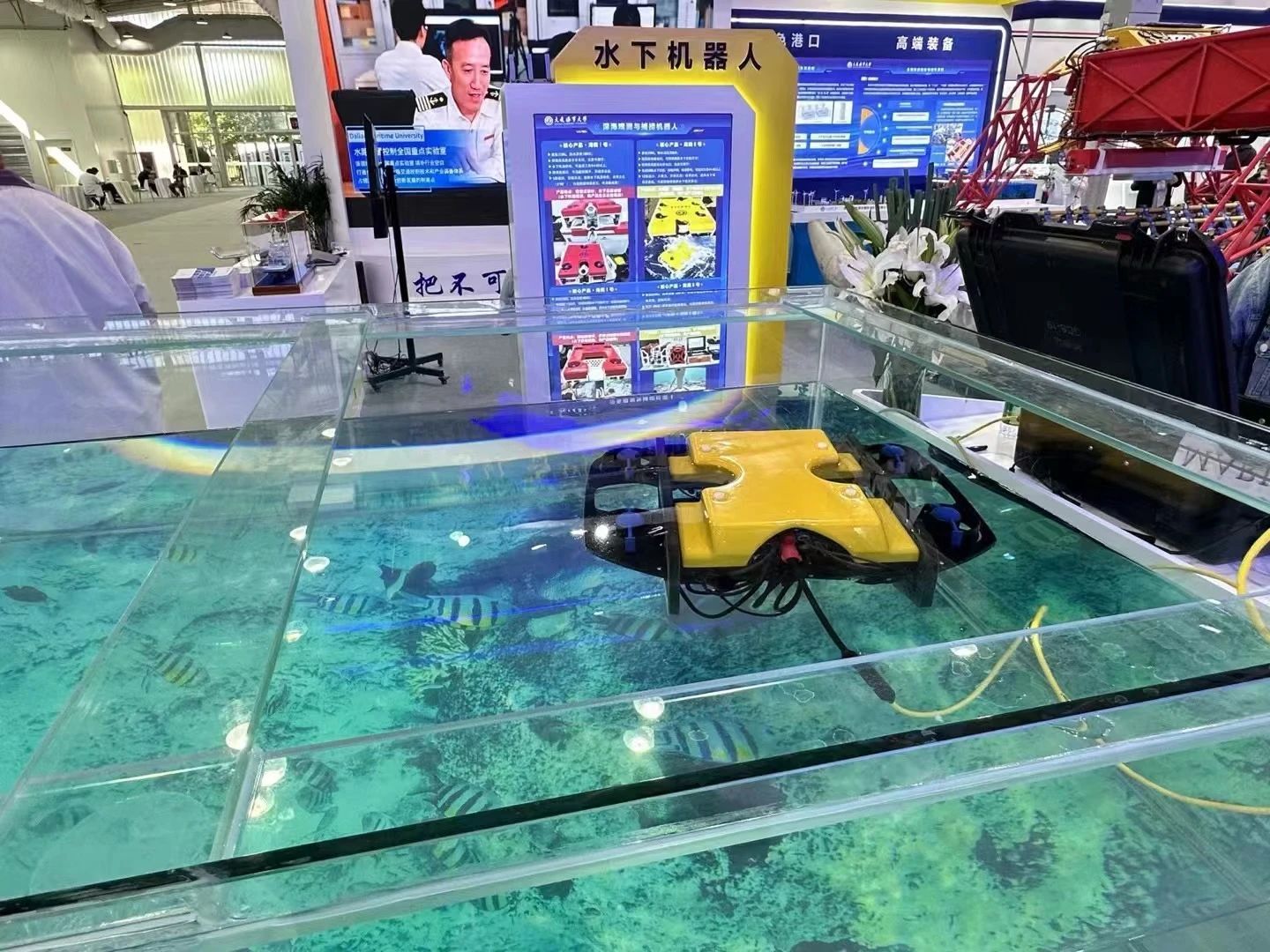 4.智能水下检测机器人徐敏义教授团队研发的智能水下检测机器人是一款可以在水下工作的缆控潜航器。该水下检测机器人能够进行水下拍摄、船体检测、水文检测以及打捞救援。该机器人已在船厂、渔场、海洋公园等多家单位进行了水下作业,具有在多种复杂环境下作业的能力。相比传统人工的工作方式不仅大大提高了作业效率,而且也改善了工作者的作业环境。