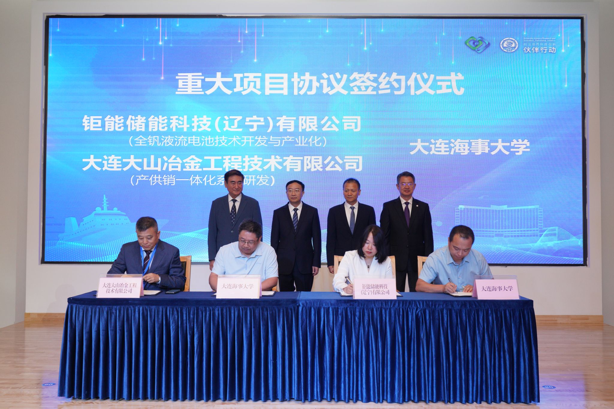 beat365官网教师马相坤、李朝辉、张国庆、王建军分别与钜能储能科技(辽宁)有限公司、大连大山冶金工程技术有限公司、华海慧洋(大连)科技有限公司、辽宁蓝金矿产资源开发有限公司签订了重大项目协议。