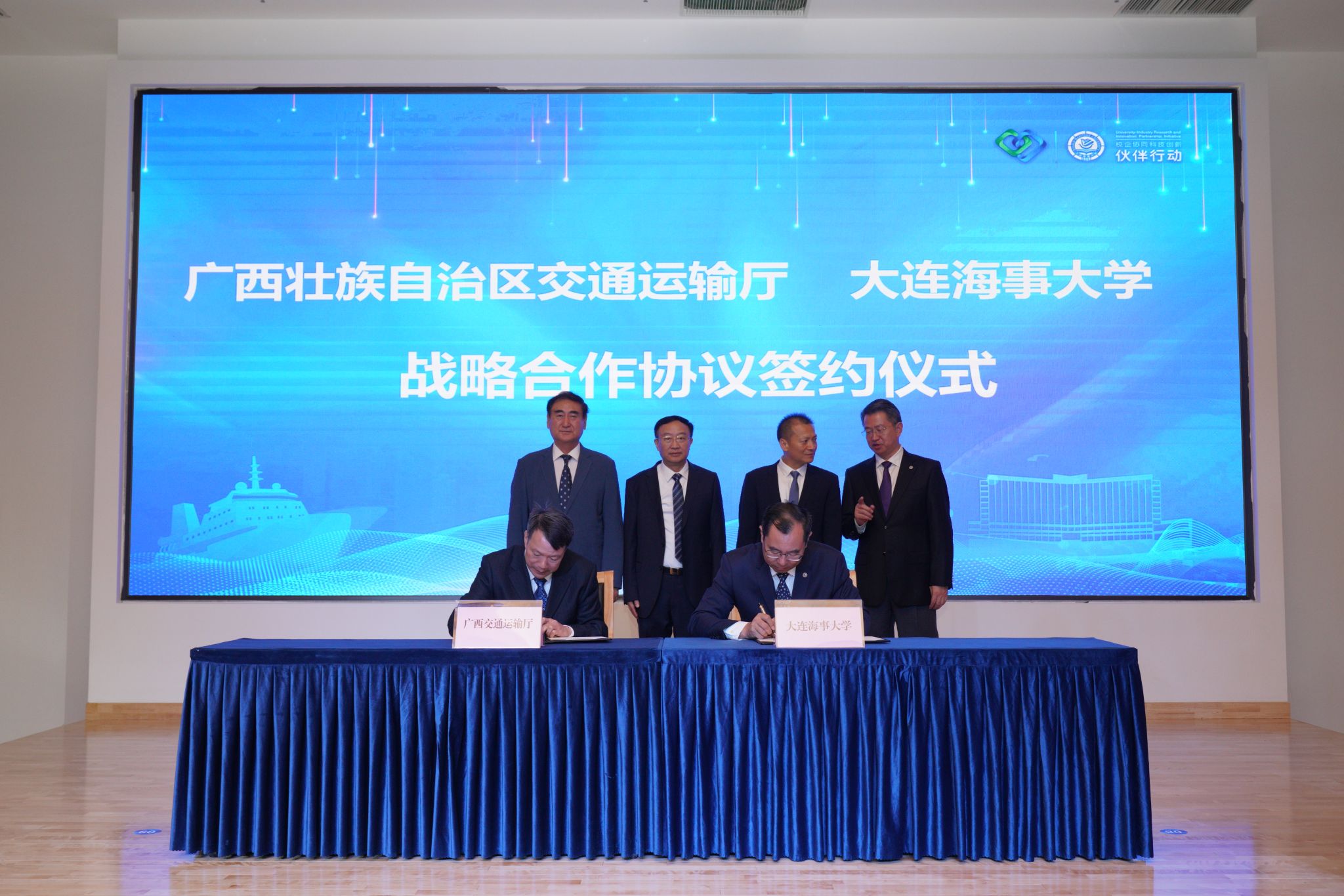 罗钟山代表学校分别与广西壮族自治区交通运输厅、浙江省海港投资运营集团、中国船舶燃料有限责任公司、中石化中海船舶燃料供应有限公司等单位签署战略合作协议。