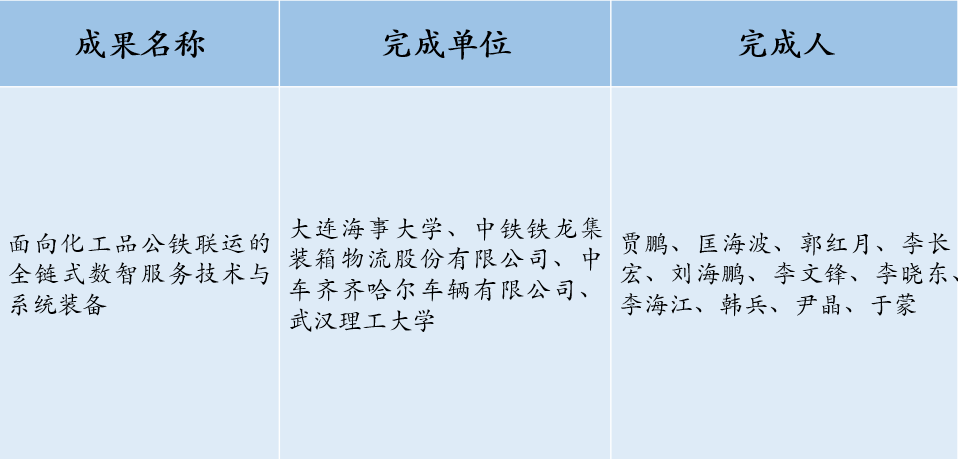 该成果是学校牵头的国家重点研发计划项目“多式联运智能集成技术与装备开发”产出成果之一,先后形成多项发明专利、软件著作权、高水平论文等,研发的大容积智能罐式集装箱和“诚运天下”物流平台,在市场上取得了显著成效,为推动我国化工品物流绿色化、安全化和集约化发展树立了标杆。