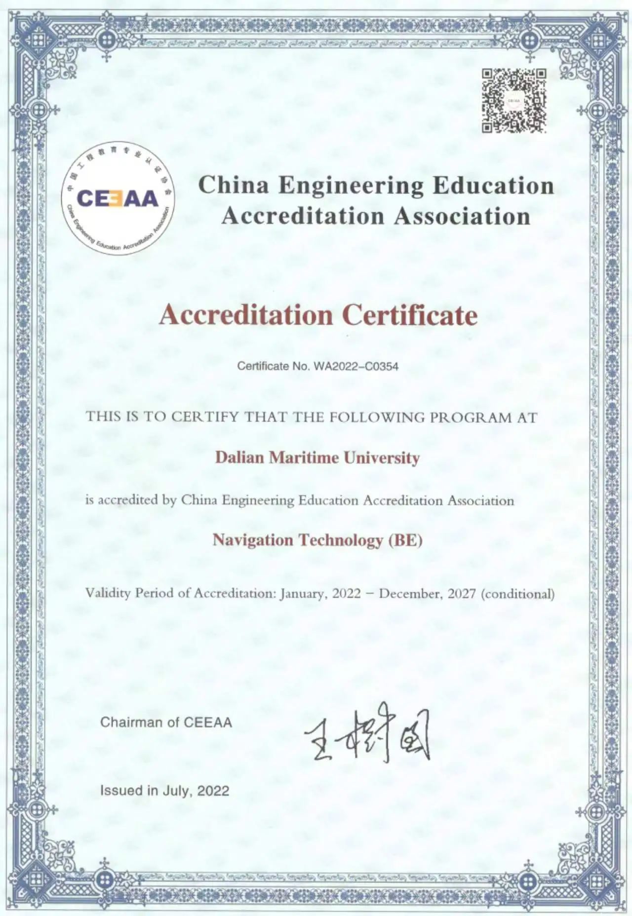 中国工程教育认证证书
