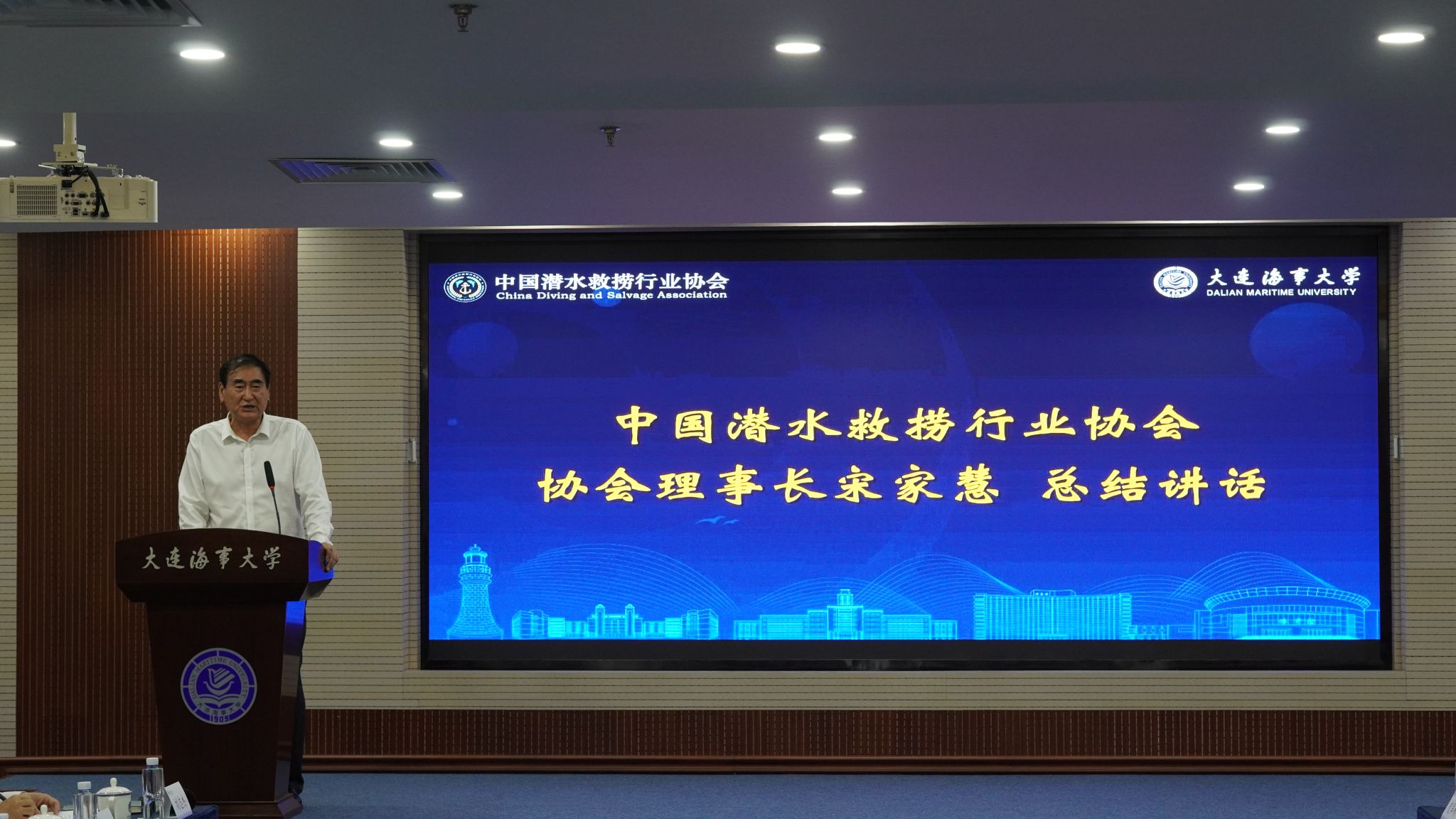 宋家慧代表中国潜水救捞行业协会进行总结发言。他简要回顾了中国潜水救捞行业协会的发展历程,并对未来发展方向提出建议。他强调,协会要加强自身建设,推动技术创新,深化国际合作,不断吸纳更多人才,产出更多关键成果,持续加强行业标准化建设,完善应急救援体系,在保障航线安全、维护海洋权益等方面发挥更大作用。
