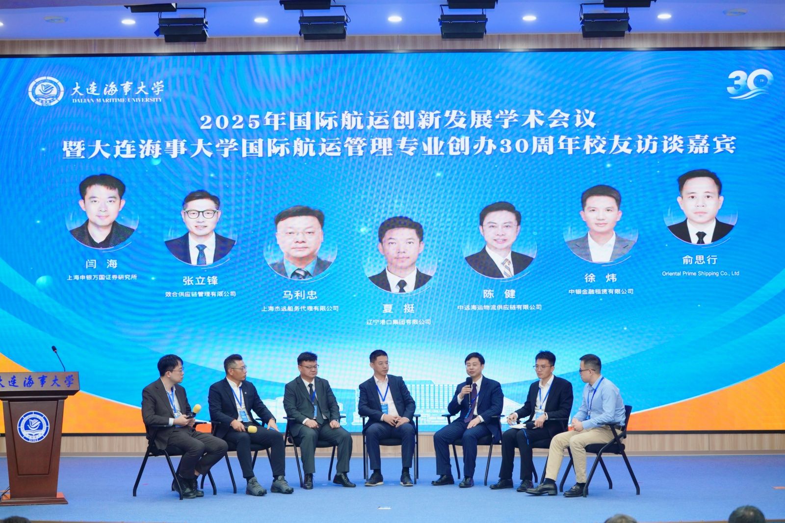 校友论坛中,效合供应链管理有限公司张立锋、上海杰远船务代理有限公司马利忠、辽宁港口集团有限公司夏挺、中远海运物流供应链有限公司陈健、中银金融租赁有限公司徐炜、Oriental Prime Shipping Co.,Ltd俞思行、上海申银万国证券研究所闫海等7位校友围绕国际航运创新发展主题,聚焦行业变革趋势、专业课程优化建议及业务协同路径等方向展开深入交流。