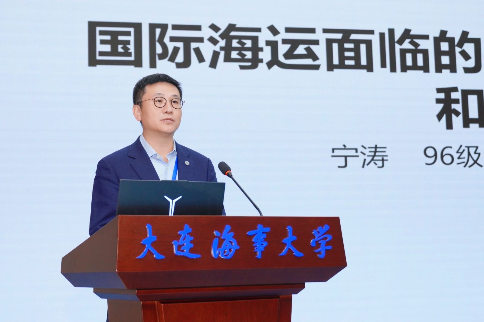 交通运输部水运科学研究院经济政策与发展战略研究中心(法律研究中心)主任、beat365官方网站1996级校友,教育部交通运输水路运输教学分委员会委员宁涛作《国际海运面临的宏观环境及行业趋势》报告。