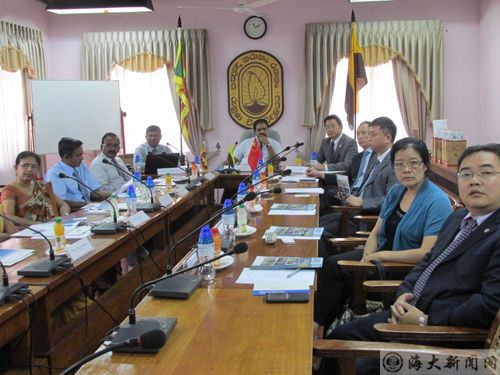 12日,代表团一行访问了斯里兰卡全国排名第三的卢哈纳大学。卢哈纳大学副校长那亚那﹒阿拉吉瓦那(Nayana Alagiwanna)以及国际合作部、渔业与海洋科技学院等部门负责人会见了代表团一行。
