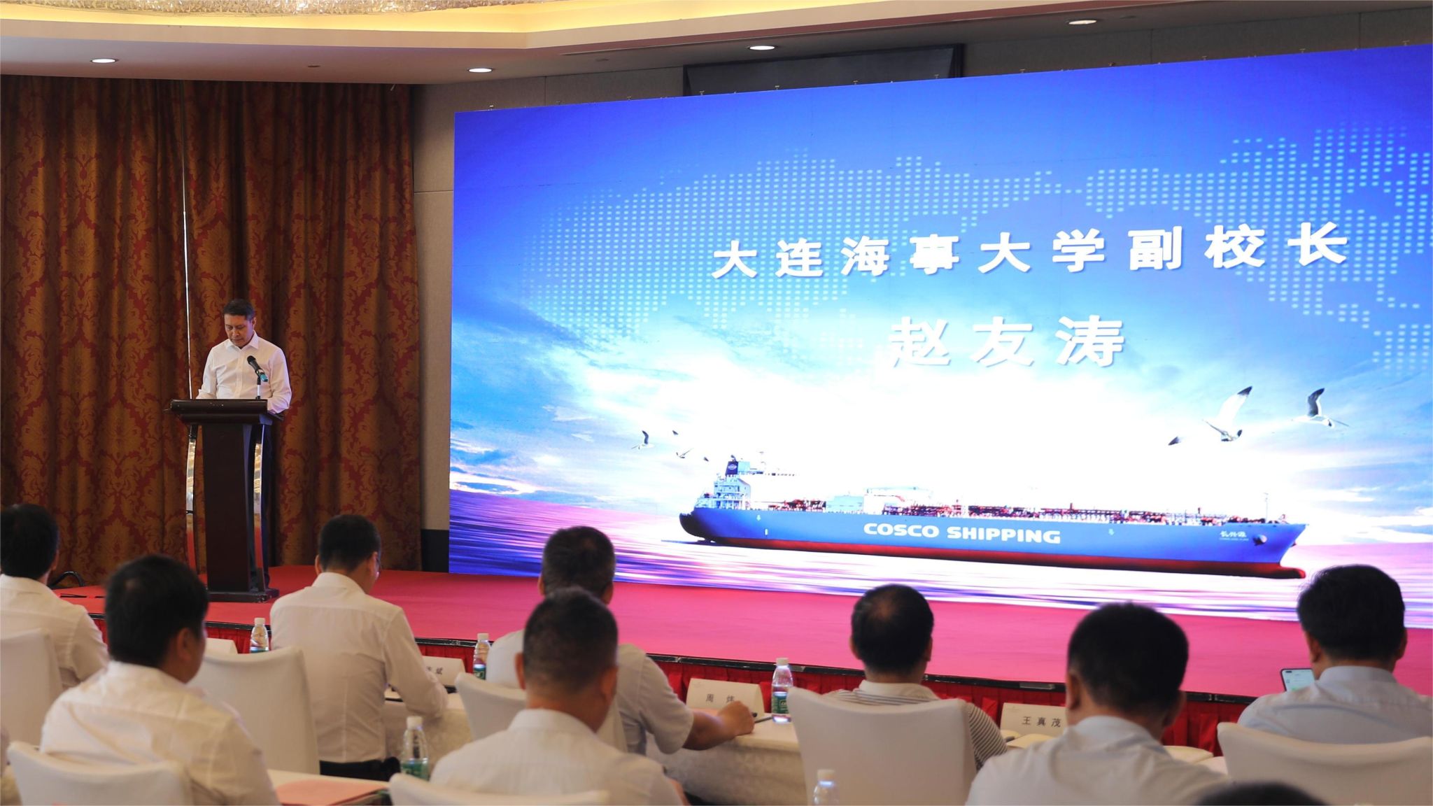 6月25日,由辽宁省船员服务行业协会联合辽宁省航海学会、辽宁省船东协会、辽宁海事局等单位共同举办的辽宁地区2023年世界海员日庆祝活动在大连召开。副校长赵友涛应邀出席活动并作了主旨发言。