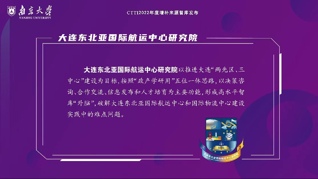 12月17日,由南京大学与江苏省社会科学院共同主办,南京大学中国智库研究与评价中心承办的“2022新型智库治理论坛”在南京举行。论坛发布了中国智库索引(CTTI)2022年度来源智库增补名单,beat365官网大连东北亚国际航运中心研究院、辽宁沿海开放与经济发展研究基地2个智库机构新增入选。