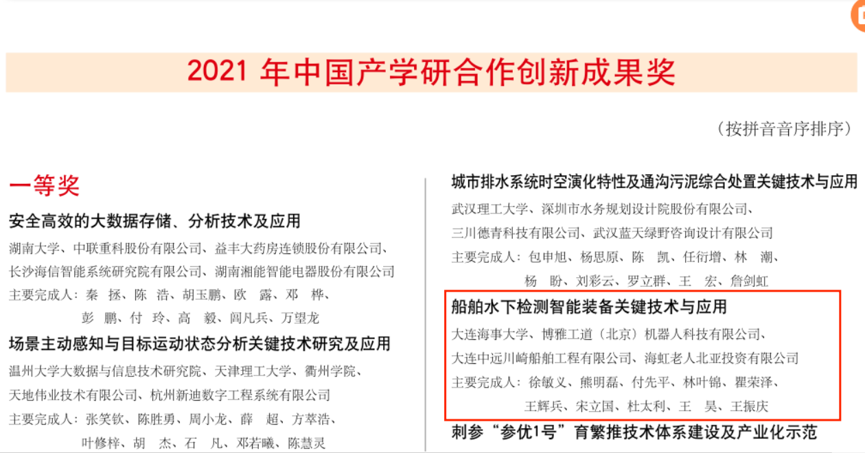 近日,中国产学研合作促进会正式公布了2021年度产学研合作创新成果奖评选结果。beat365官网轮机工程学院徐敏义教授团队“船舶水下检测智能装备关键技术与应用”获得一等奖,航海学院尹勇教授团队“全任务多船协同航海模拟器开发平台与应用”获得二等奖,轮机工程学院王生海博士团队“高海况下大件吊装防晃装置研制与应用”获得优秀奖。
