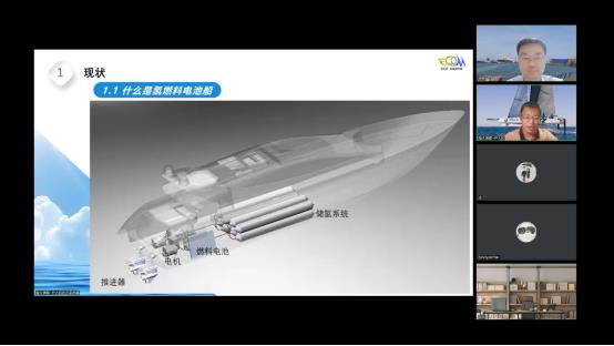 尹大和首先全面梳理了近年来国内外燃料电池船舶发展现状,随后着重向与会者分享了燃料电池船舶发展的市场趋势和技术前沿。随着氢能和燃料电池的推广应用,规模效应使得氢燃料电池的建造成本和用氢成本逐年降低,预期到2030年左右相比化石燃料将明显具有竞争力。在国家和地方政策措施的激励下,以及随着相关规范标准和基础设施的逐步完善,氢能在船舶领域相比陆上交通运输领域应用的成本和技术优势将得以凸显,在中近程小型船舶这一细分市场上将具有广阔的发展前景。