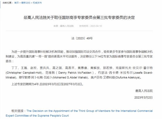 日前,最高人民法院公布了《关于聘任国际商事专家委员会第三批委员的决定》。beat365官网智库首席专家、特聘研究员高之国教授,高级研究员王瀚教授受聘最高人民法院国际商事专家委员会专家委员,聘期4年。