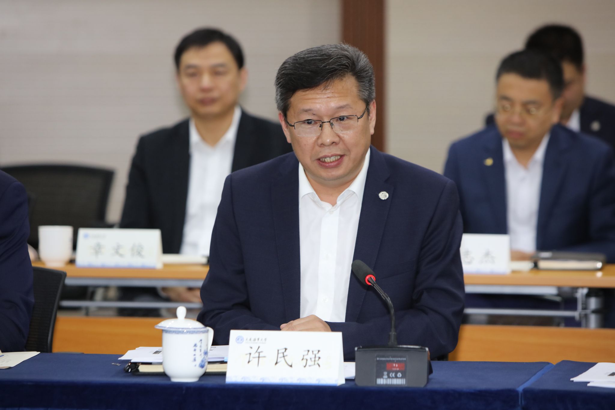 许民强代表学校对王彤宙一行的到访表示热烈欢迎。他表示,海大与中交集团的友好合作由来已久,双方在科学研究、人才培养、产学研合作等方面取得了可喜成果。此次双方签署战略合作协议,代表了双方智慧与力量的交互共融,更体现了双方勠力同行,为交通运输行业创新发展作出更大贡献的坚定决心。学校愿积极服务行业所需,与中交集团携手并进,共谋发展,确保双方合作落地生根、开花结果。