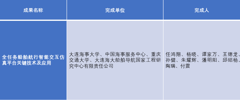 “全任务船舶航行智能交互仿真平台关键技术及应用”面向复杂海况及多种航行态势下的海事监管、搜救决策、综合训练等方面需求,通过产学研用联合攻关,重点突破了大型船舶与复杂航海场景耦合运动建模仿真、多源船舶航行数据的岸基融合与智能评估、海上动态目标跟踪监管及应急救援处置等关键技术,提出并构建了船舶操纵智能评估系统、实船数据驱动的岸基智能船桥系统、船舶交通态势推演系统等,在此基础上构建了全任务船舶航行智能交互仿真平台。研究成果已应用于多个高校、港航企业和军事单位,取得了良好的经济效益,有力促进了我国航海领域的虚拟仿真技术、人机交互技术、岸基支持技术的发展。