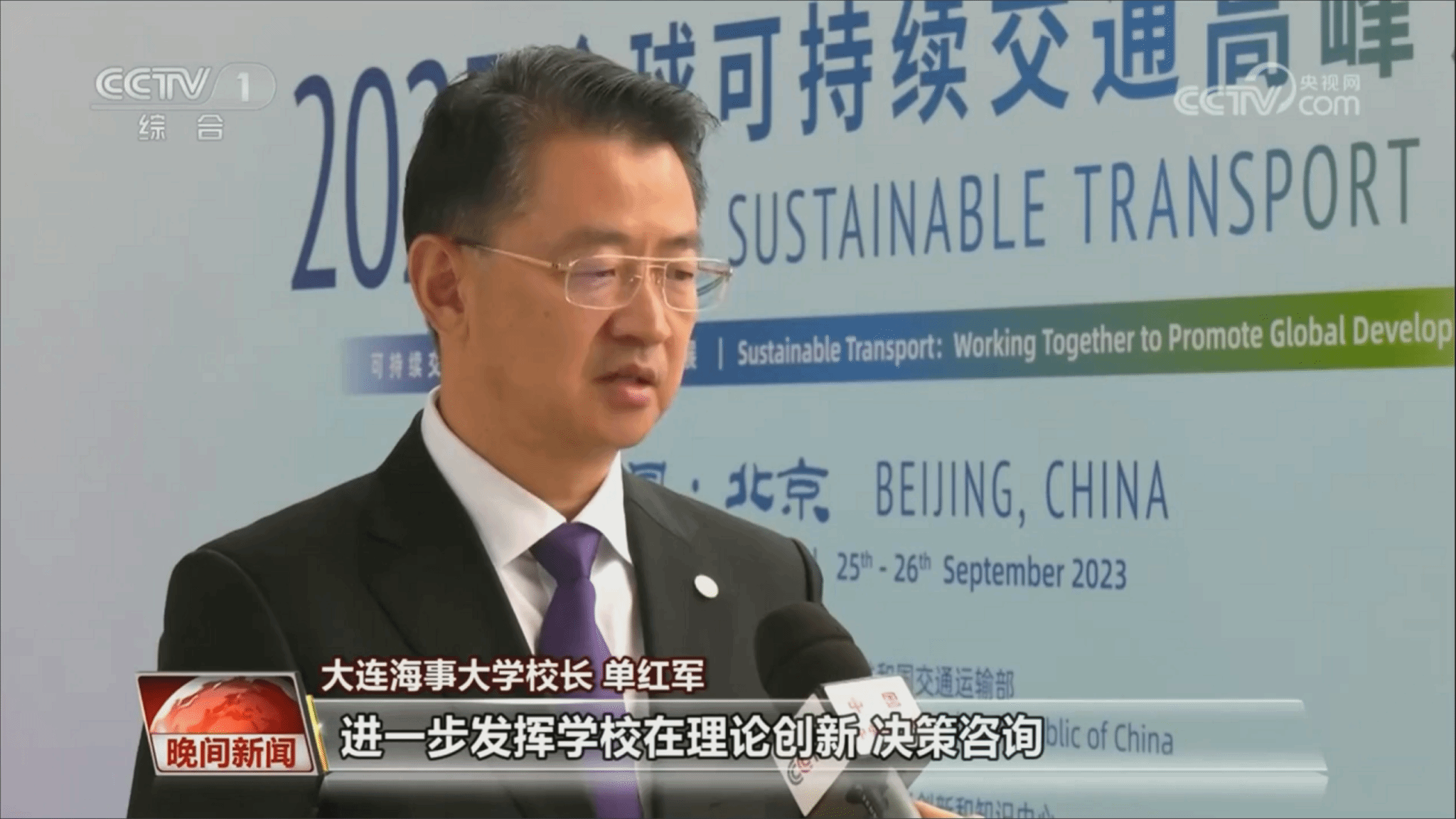 论坛期间,校长单红军接受央视采访。他表示,习近平总书记的贺信,高屋建瓴、意义深远,同习近平总书记关于可持续交通的系列重要指示精神一脉相承,为可持续交通发展和全球交通合作指明了前进方向、注入了强大动力。贺信中“人享其行、物畅其流”的美好愿景、“与世界相交、与时代相通”的重要理念,振奋人心、鼓舞斗志,为我们加快建设交通强国、努力当好中国式现代化的开路先锋凝聚起磅礴力量。他强调,作为一所具有鲜明航运、海事、海洋特色的国家“双一流”建设高校,beat365官方网站将深入学习贯彻习近平总书记贺信精神,紧紧围绕建设安全、便捷、高效、绿色、经济、包容、韧性的可持续交通体系,进一步发挥学校在理论创新、决策咨询、人才培养、国际合作等方面的优势,全力打造中国特色新型高端智库,努力在交通、海事、海洋等领域取得一批创新成果,为强国建设、民族复兴贡献海大力量。