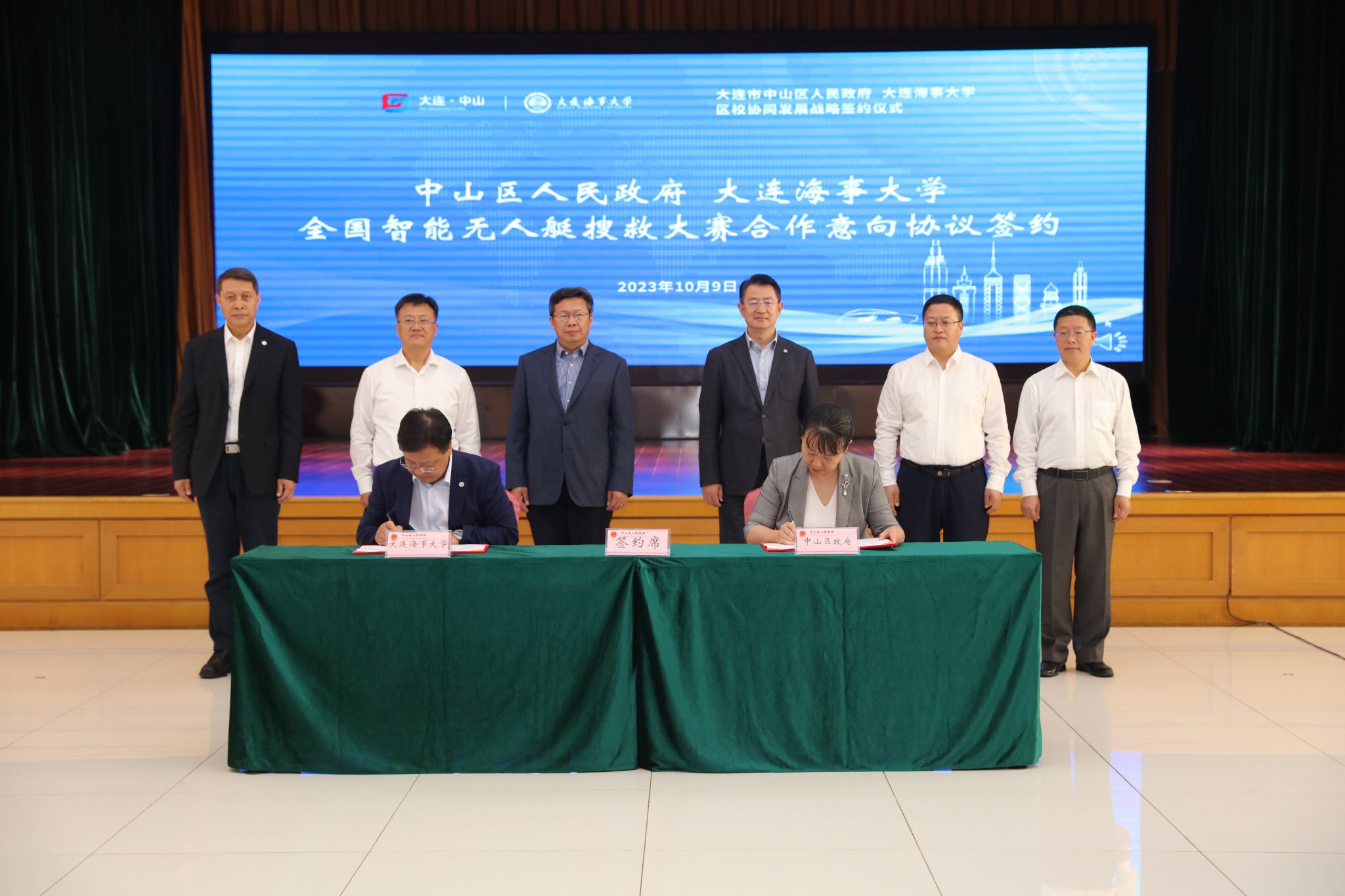 大连市中山区科工信局局长徐宇春、beat365官方网站科技处处长弓永军分别代表双方签署《第三届全国智能无人艇搜救大赛暨智能无人艇技术论坛合作意向书》。