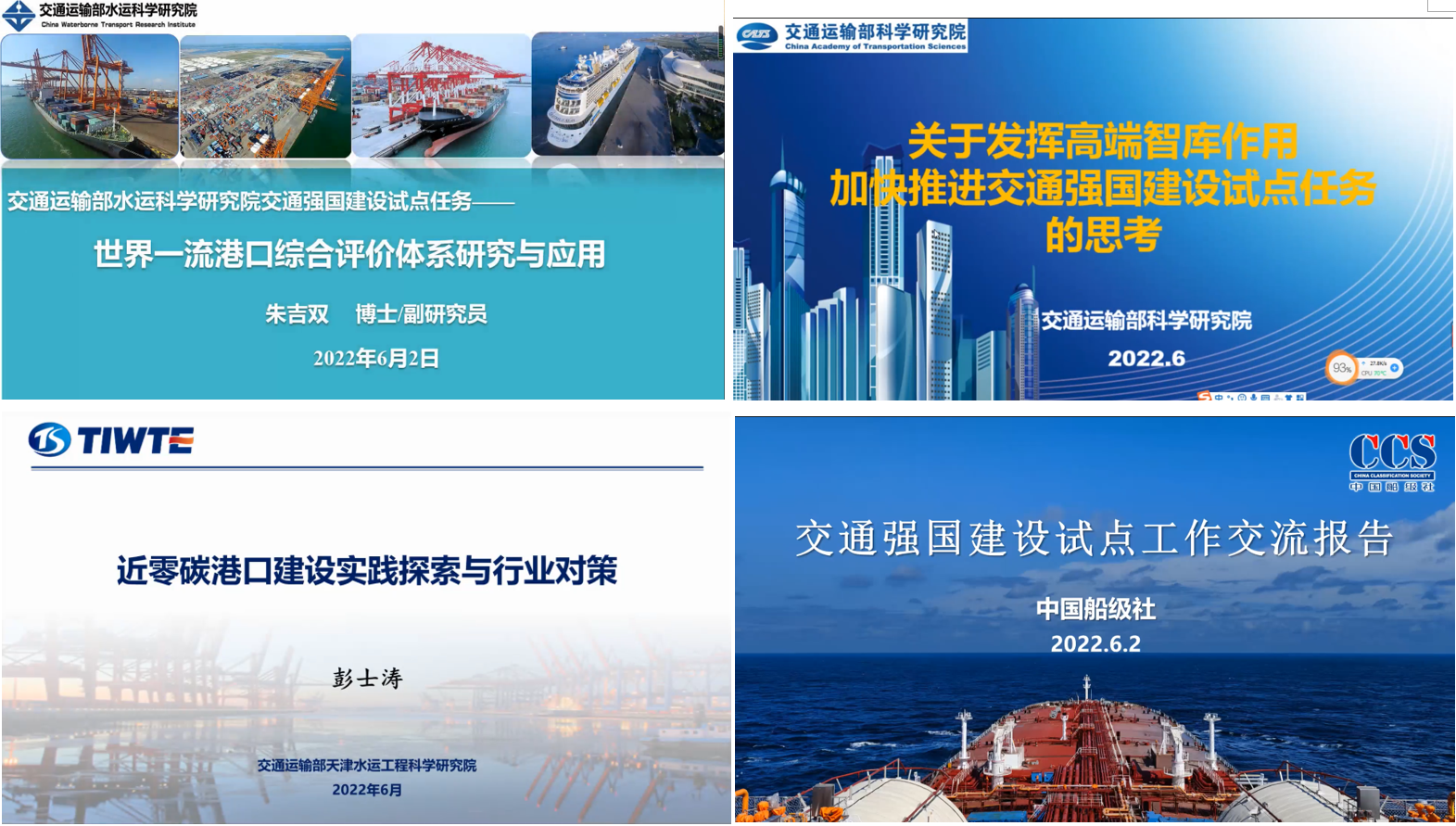 为全面落实《交通运输部办公厅关于进一步做好交通强国建设试点工作的通知》等文件要求,提升交通强国建设工作成效。6月2日,beat365官方网站联合交通运输部科学研究院、交通运输部水运科学研究院、交通运输部天津水运工程科学研究院、中国船级社、交通运输部长江航务管理局、交通运输部珠江航务管理局,召开“交通强国建设交流”研讨会,围绕交通强国建设试点任务进展与成效开展交流研讨。会议由科技处处长弓永军主持。