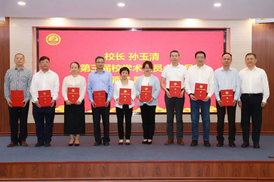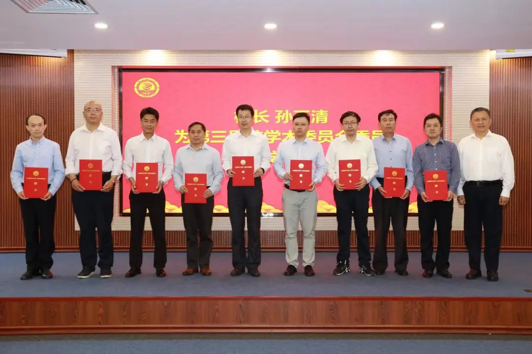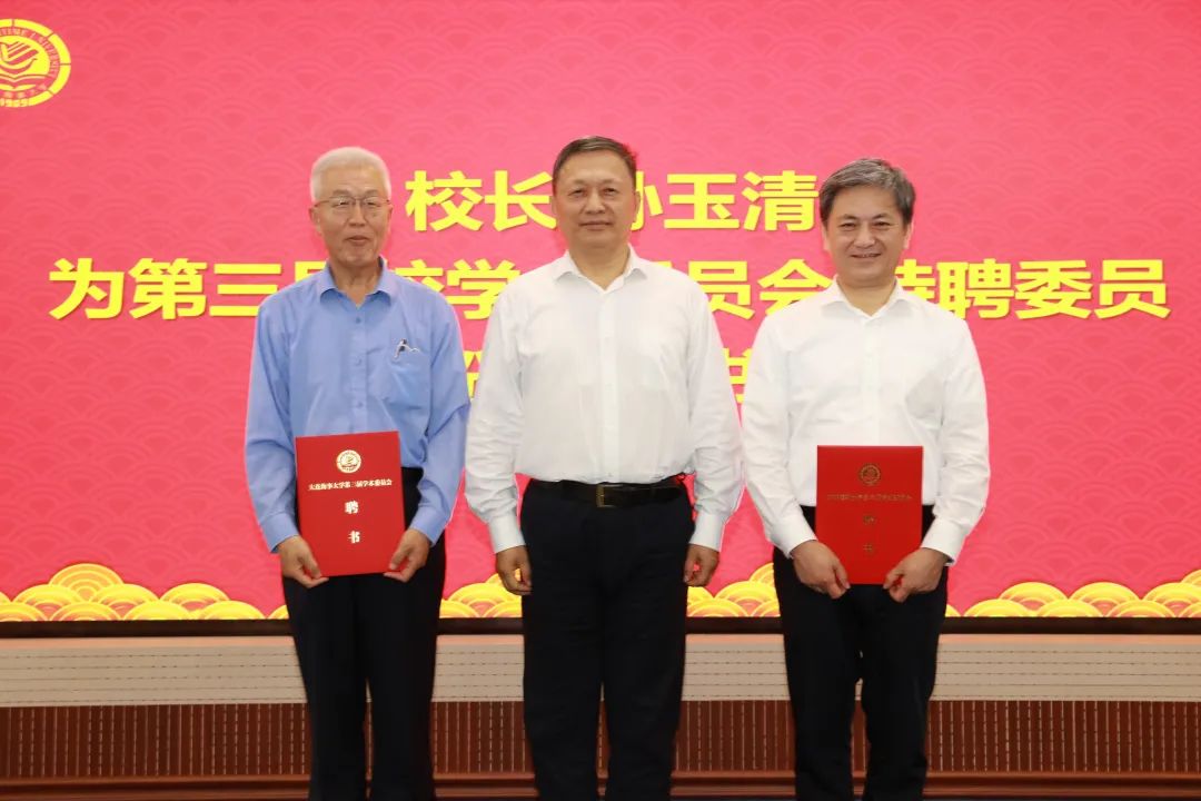 孙玉清为新当选的第三届校学术委员会主任委员、副主任委员、委员颁发聘书