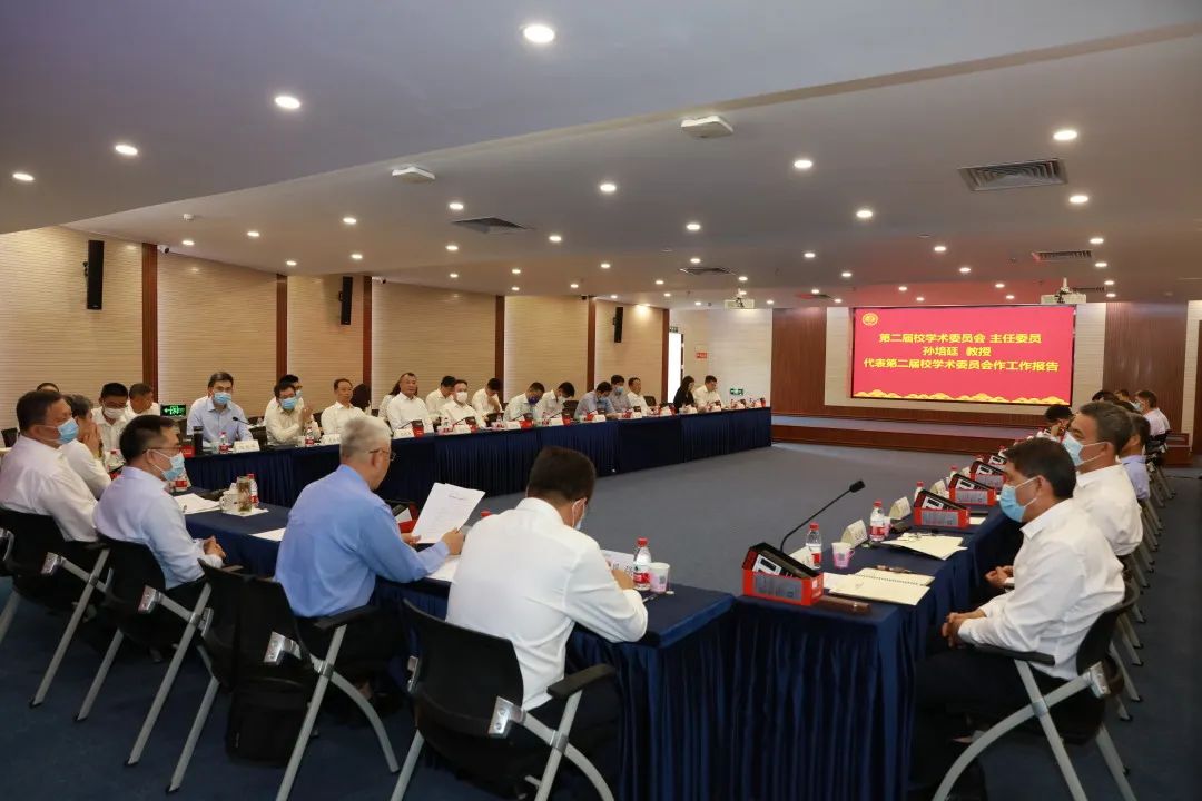 会议分为两个阶段,第一阶段为第二届校学术委员会总结大会,由初北平主持。第二届校学术委员会主任委员孙培廷教授代表第二届校学术委员会做总结报告。他介绍了第二届校学术委员会在参与重大规划编制、助力学科建设和发展、促进人才强校战略实施、为科研体制机制改革提供决策参考等方面任务的完成情况,提出了关于进一步加强学术委员会建设的思考与建议。