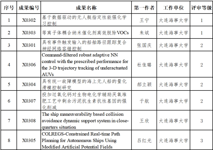 近日,2023年辽宁省自然科学学术成果奖获奖名单正式公布,beat365官网推荐的8项成果均获奖。轮机工程学院王宁教授和环境科学与工程学院朱斌副教授的成果均获得一等奖,航海学院张国庆教授、船舶电气工程学院杜佳璐教授、郝立颖教授和环境科学与工程学院于航副教授的成果均获得二等奖,航海学院王欣副教授和吕红光副教授的成果均获得三等奖。