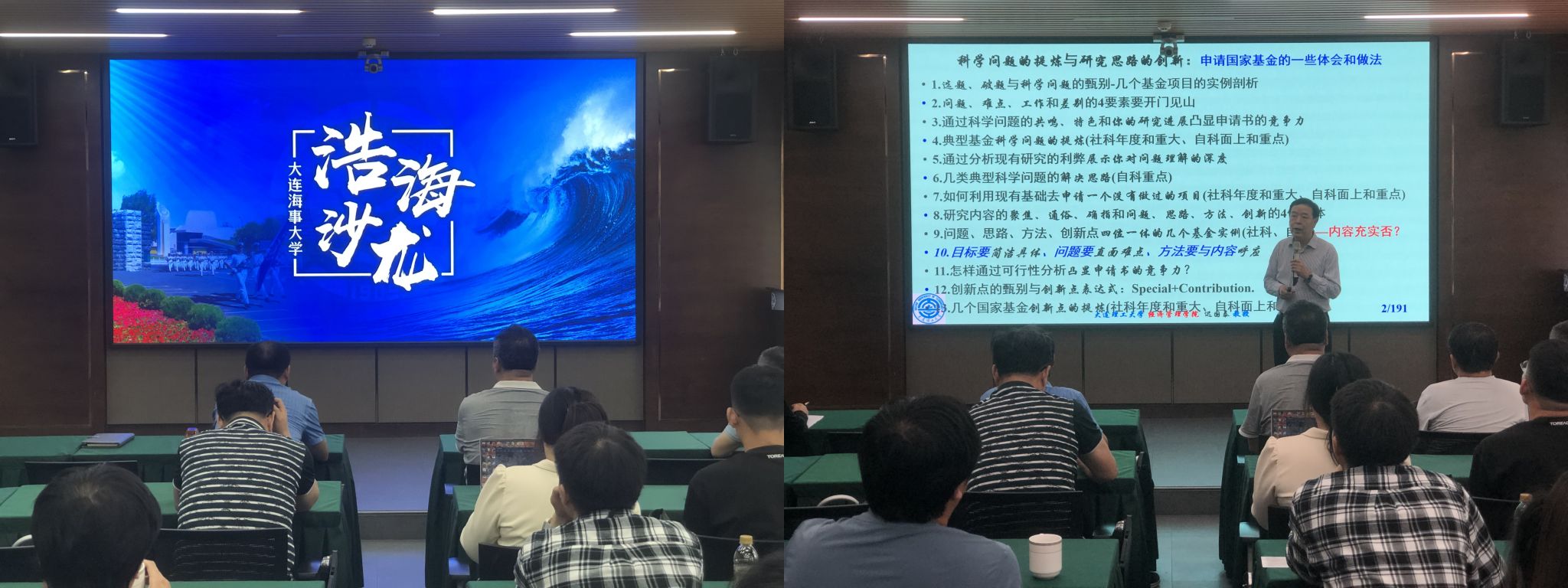 迟国泰围绕“问题、难点、工作与差别的四要素要开门见山”“问题、思路、方法、创新四位一体”等13个方面就如何选题、破题与科学问题与大家进行了交流。迟国泰提出“确指+贡献+意义”的创新点表达式,结合自身丰富的案例经历,形象生动的指出申报项目目标要简洁、问题要直面难点、方法与内容呼应进而凸显申报书的竞争力。