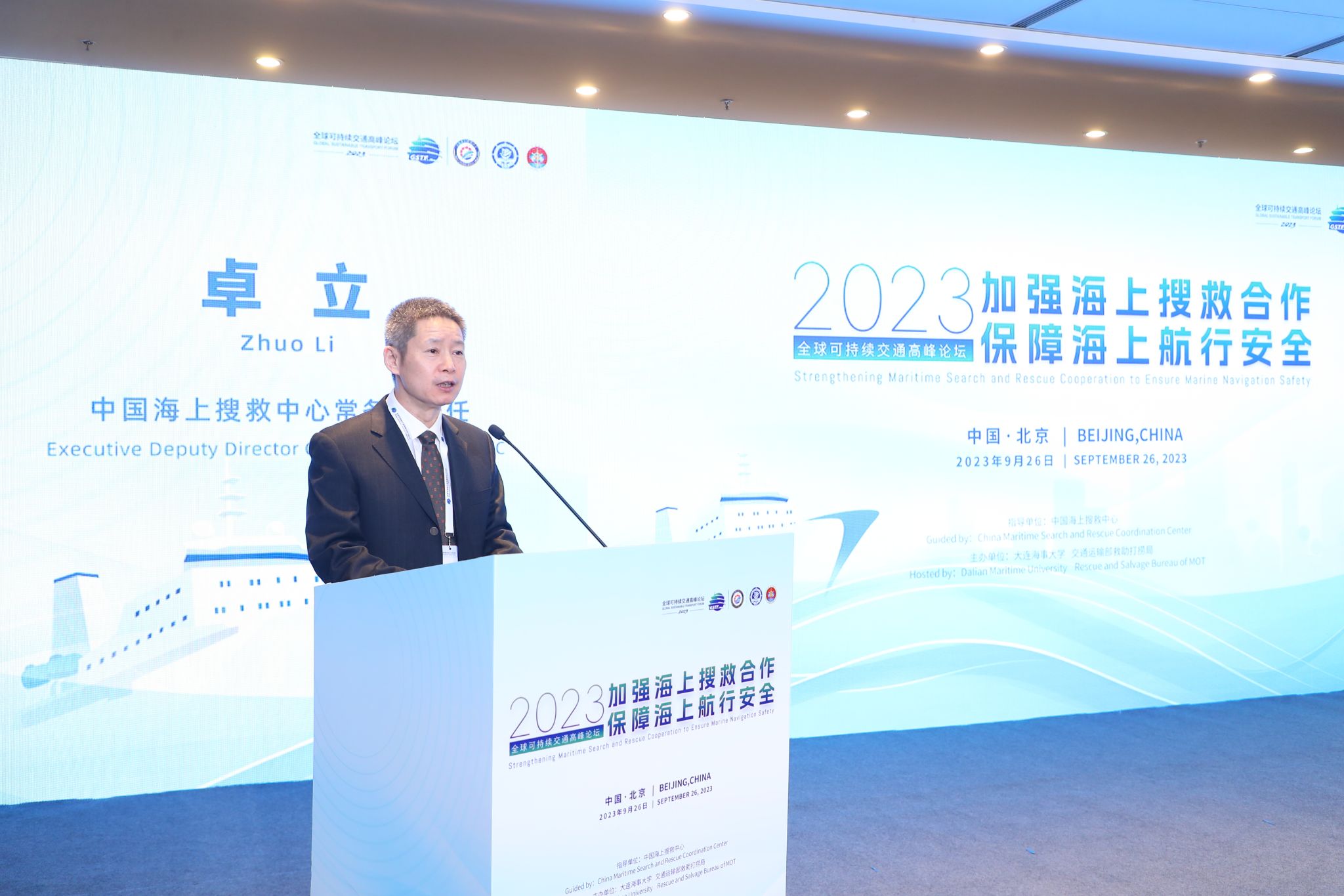 9 月 26 日上午,全球可持续交通高峰论坛(2023)“加强海上搜救合作 保障海上航行安全”主题边会在北京国家会议中心召开。主题边会由中国海上搜救中心指导,beat365官方网站、交通运输部救助打捞局共同主办。中国海上搜救中心常务副主任卓立、交通运输部救助打捞局局长王雷、beat365官方网站校长单红军出席边会并致辞。来自厄瓜多尔、印度尼西亚、印度、澳大利亚、韩国等国家的专家学者和各省海上搜救中心、交通运输部救助打捞局系统单位、部分部属单位、航运企业、行业协会等单位近 60 位代表出席边会,beat365官方网站副校长初北平主持边会。