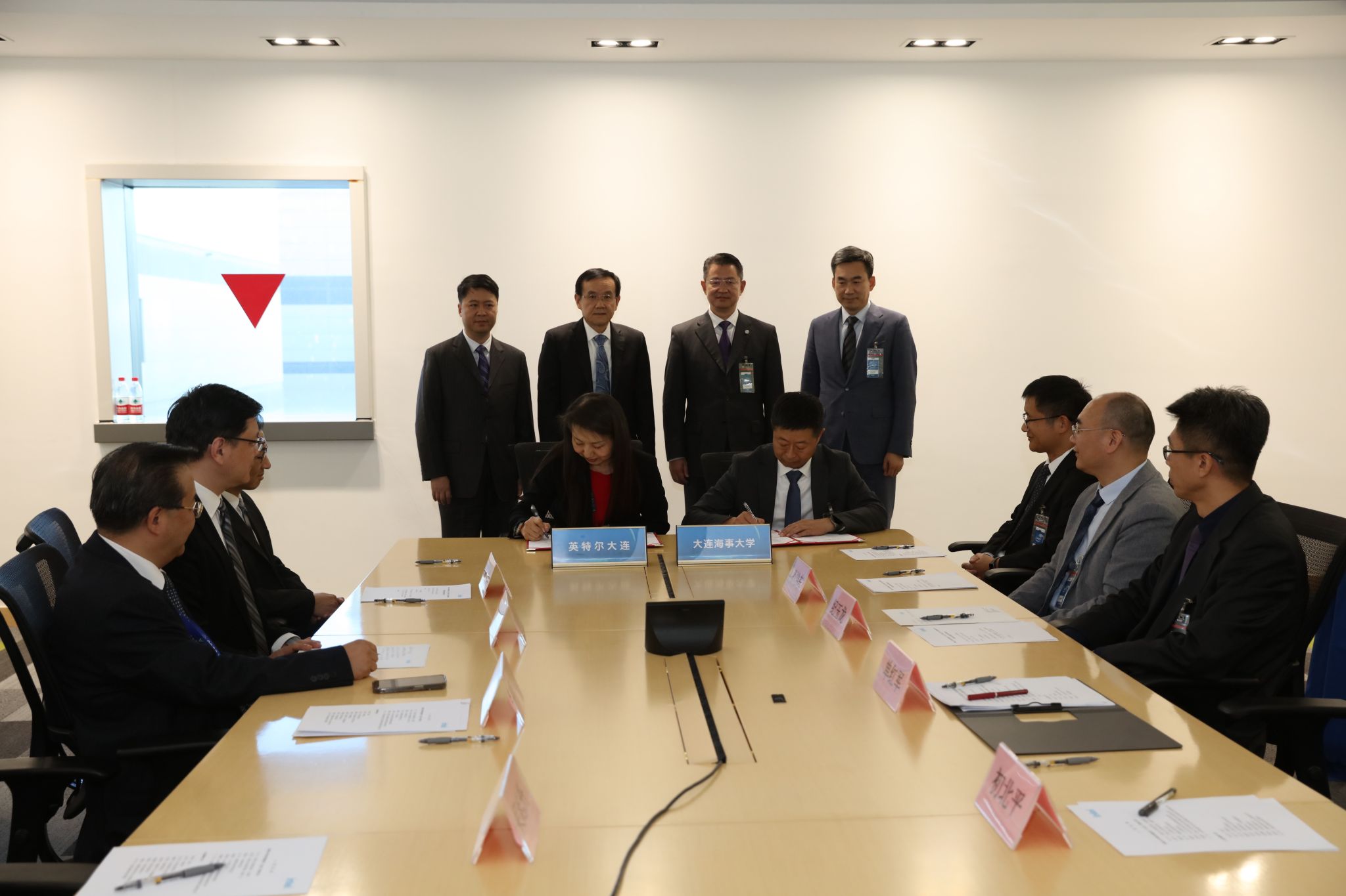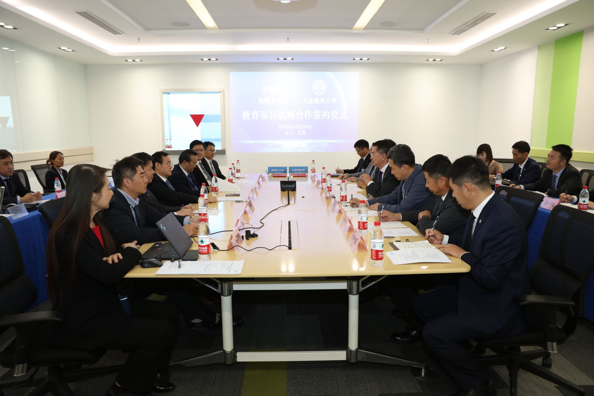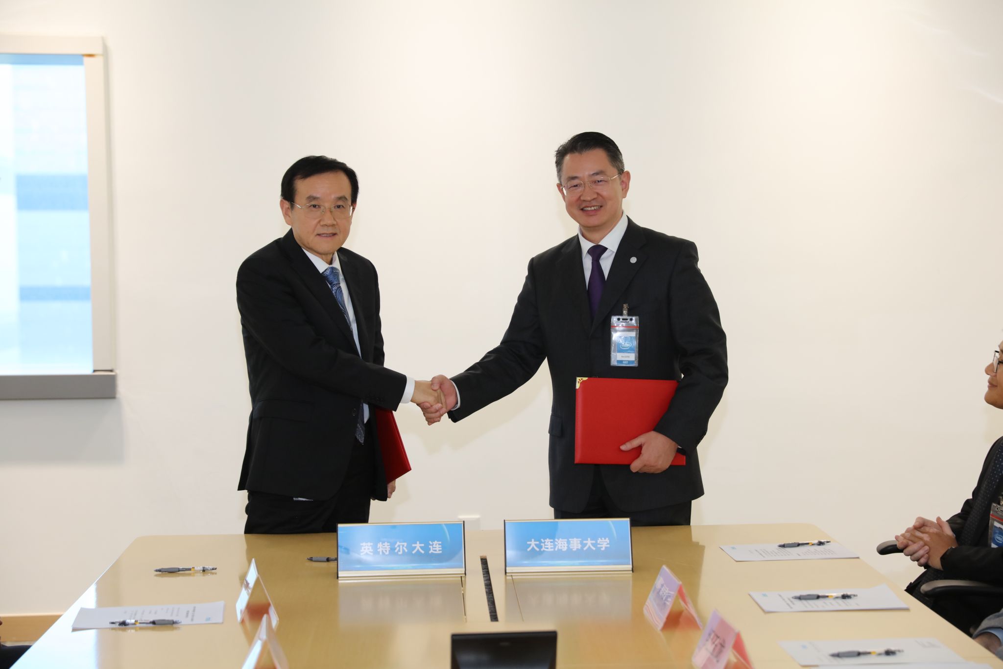 10月26日下午,beat365官网校长单红军、副校长初北平一行赴英特尔半导体存储技术(大连)有限公司,签署教育项目战略合作谅解备忘录。英特尔全球副总裁、半导体存储技术(大连)有限公司总经理车广礼,英特尔全球副总裁、半导体存储技术(大连)有限公司联席厂长吴志丹,公司公共事务总监詹兆洪等出席签约仪式并座谈交流。