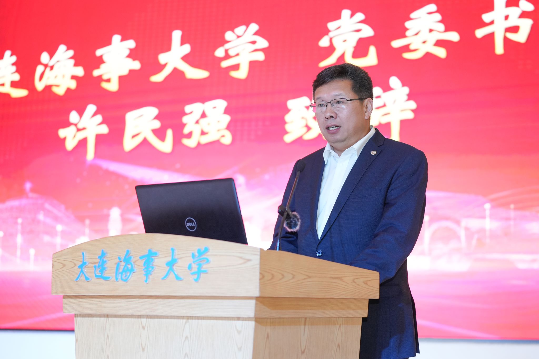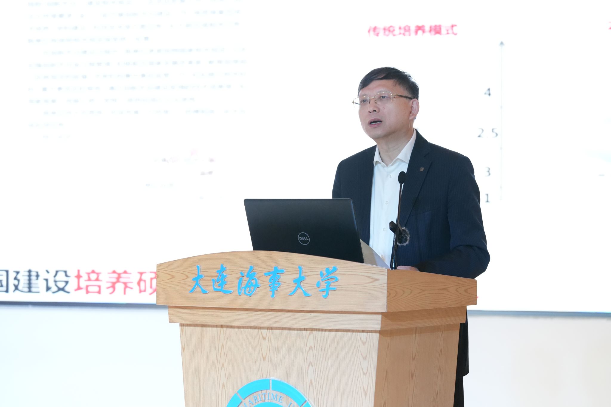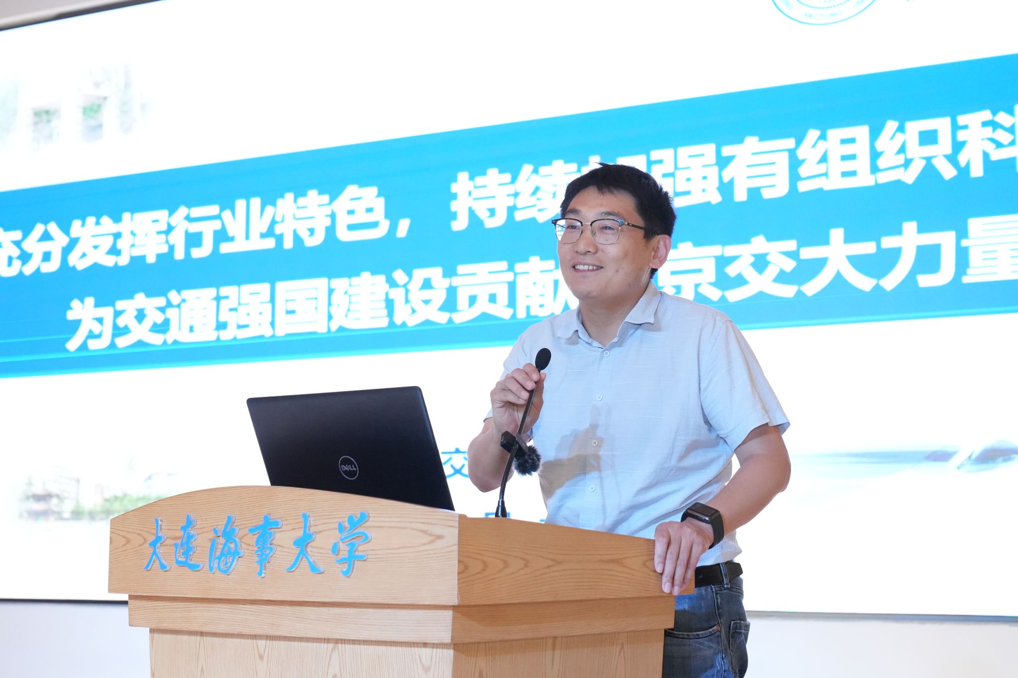 集美大学副校长黄新华作《工海融合 创特色科研 育交通人才》主题演讲,结合办学特色及科研优势,分享了集美大学在加快建设交通强国过程中作出的主要贡献。
