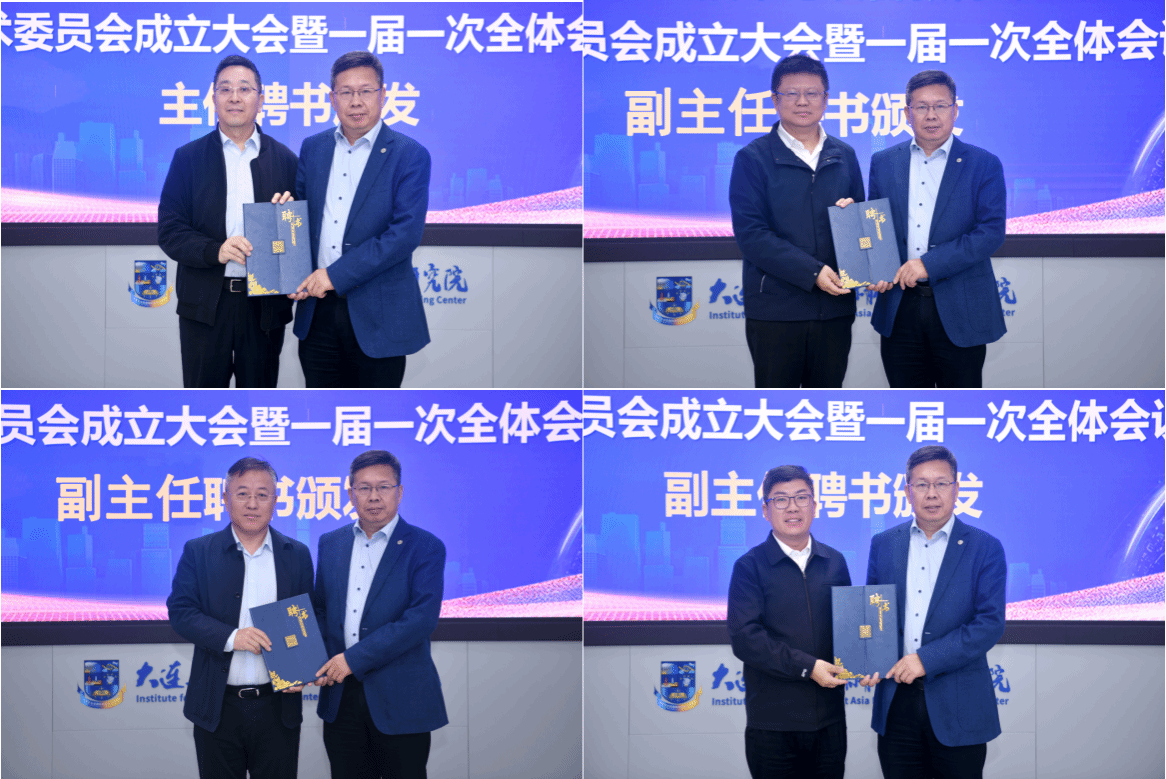 许民强代表学校向技术委员会新加坡工程院院士、新加坡国立大学孟强主任,高德地图副总裁董振宁副主任,大连重工装备集团副总经理孙大庆副主任,山东省港口集团智慧港口技术总顾问、国家“时代楷模”张连钢副主任(张峰代领)以及全体委员颁发聘书。