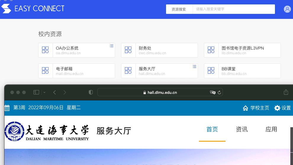 a、下载VPN客户端:https://svpn.dlmu.edu.cn/portal/#!/down_client,安装客户端EasyConnect;