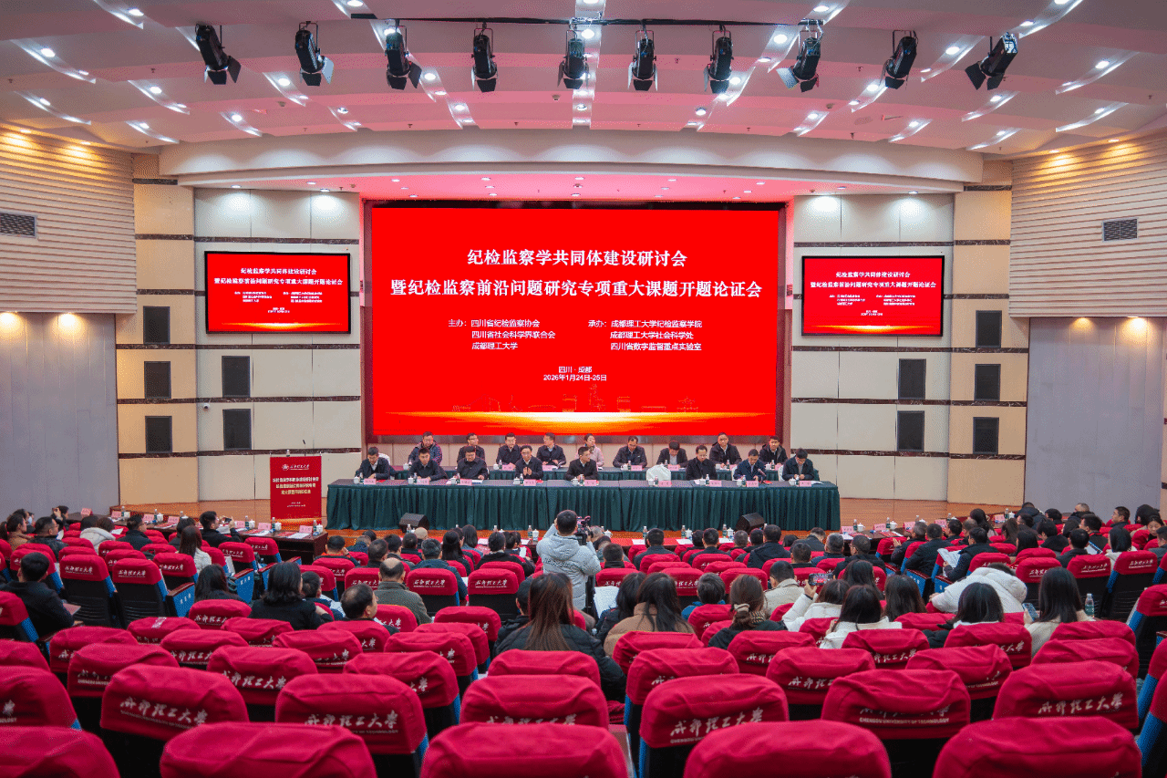 为深入贯彻二十届中央纪委五次全会精神,加快构建纪检监察学自主知识体系,凝聚理论界与实务界合力,攻关学科前沿问题,夯实人才培养根基,2026年1月24日至25日,纪检监察学共同体建设研讨会暨“纪检监察前沿问题研究”专项重大课题开题论证会在成都理工大学隆重召开。学校纪委书记、纪检监察研究院院长罗钟山受邀在会议上作主旨演讲,并参加《数字监督研究》共同体建设启动仪式。在《数字监督研究》共同体建设启动仪式上,成都理工大学、...