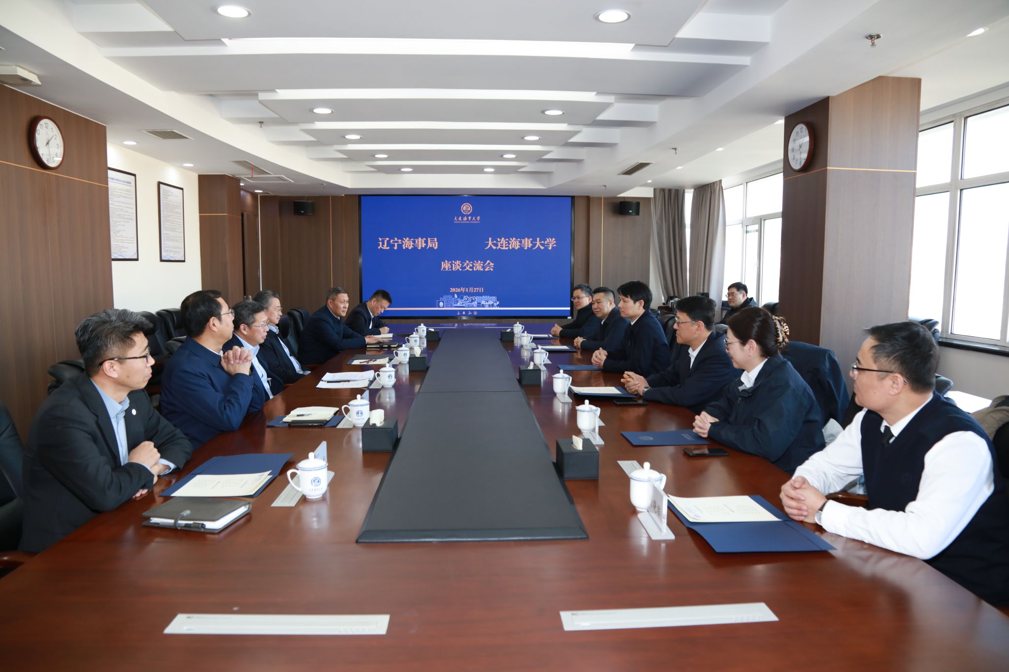 1月27日下午,辽宁海事局党组书记、局长李表康,局领导季军、刘力、李玮、王恒斌来校调研,学校党委书记许民强,校长单红军,校领导罗钟山、赵友涛、纪玉龙在823会议室会见李表康一行并座谈交流。许民强代表学校对辽宁海事局长期以来的关心与支持表示感谢。他回顾了2024年双方签署《合作协议》以来,在科学研究、人才培养、海事监管、履约研究等方面的合作进展情况,并围绕可持续船用燃料联合研发中心建设、《高素质船员队伍赋能港口城市高质量发展》...